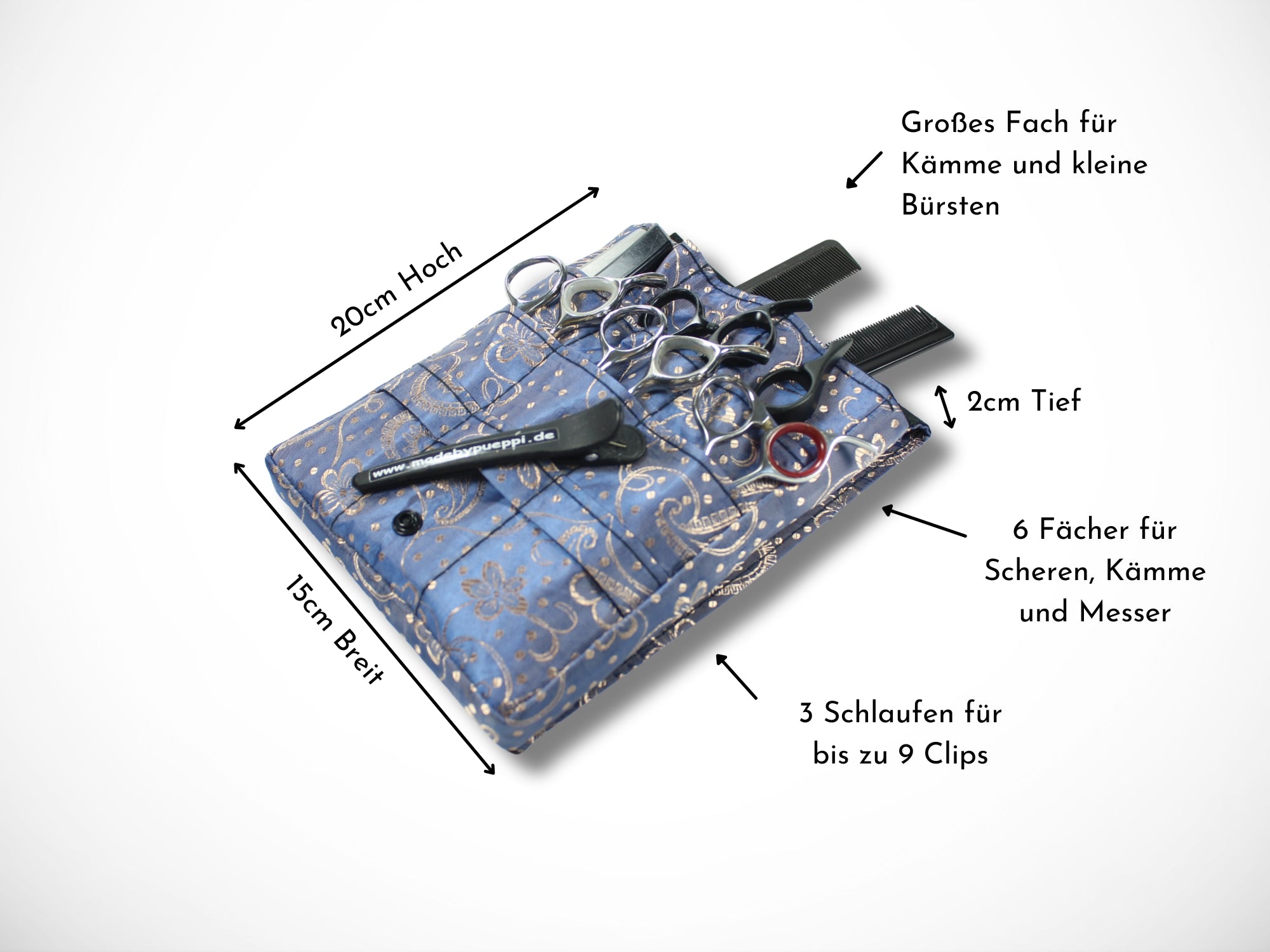 Diese handgefertigte Scherentasche ist der perfekte Begleiter bei deinem Berufsalltag im Friseur Salon.