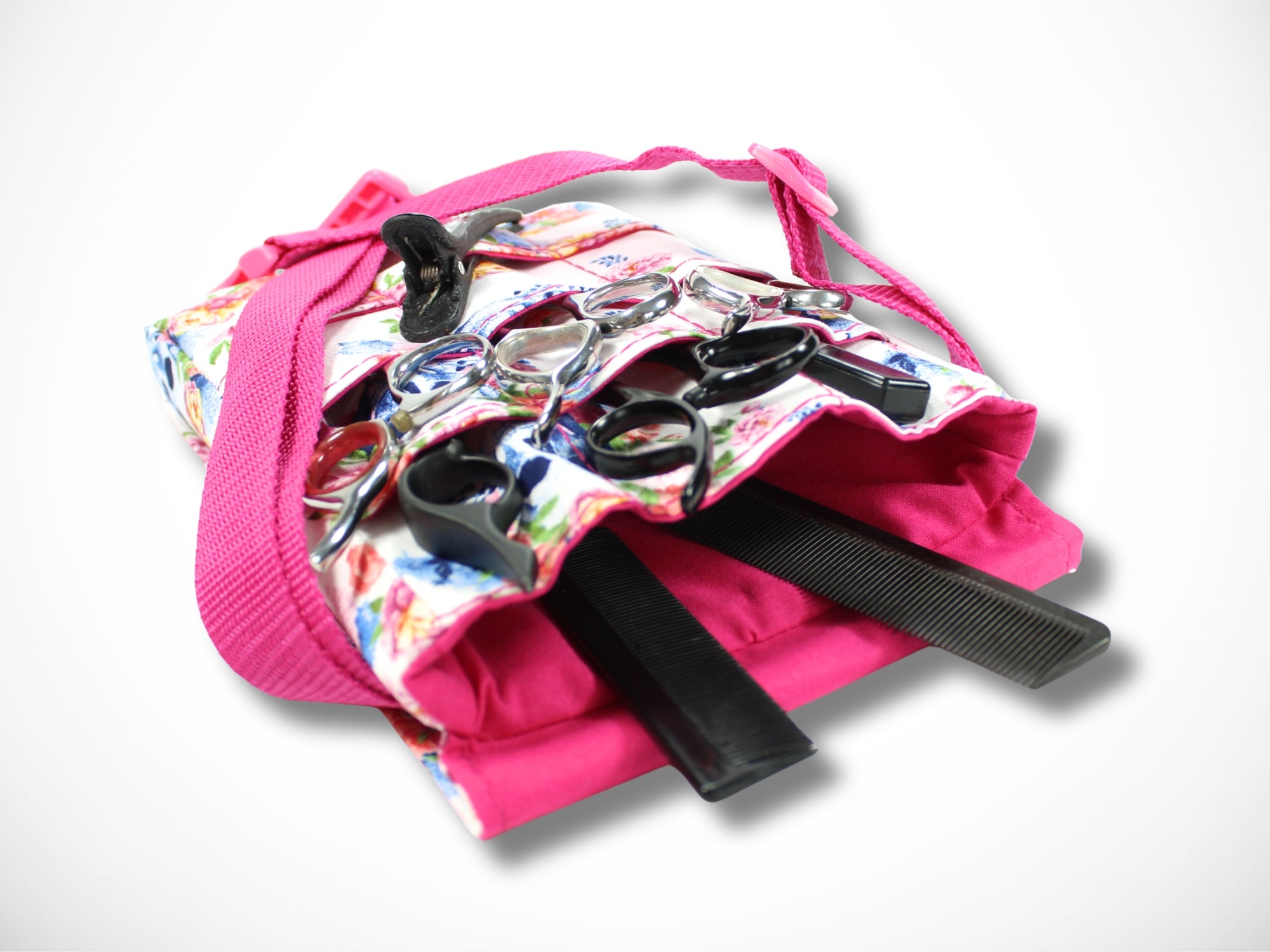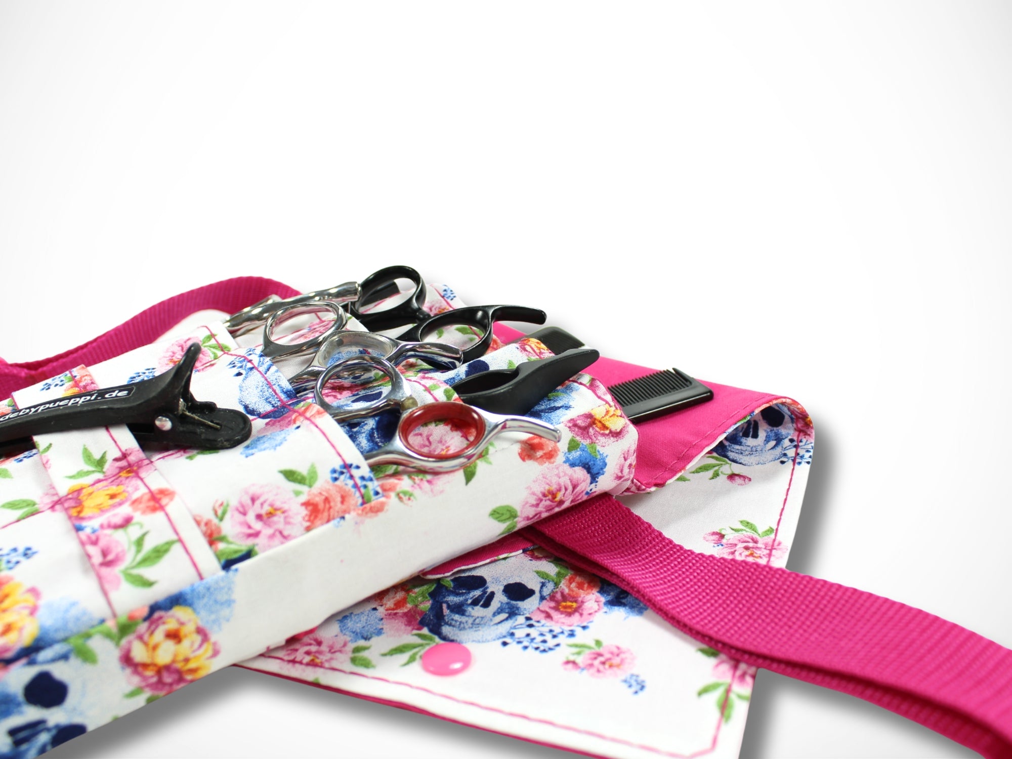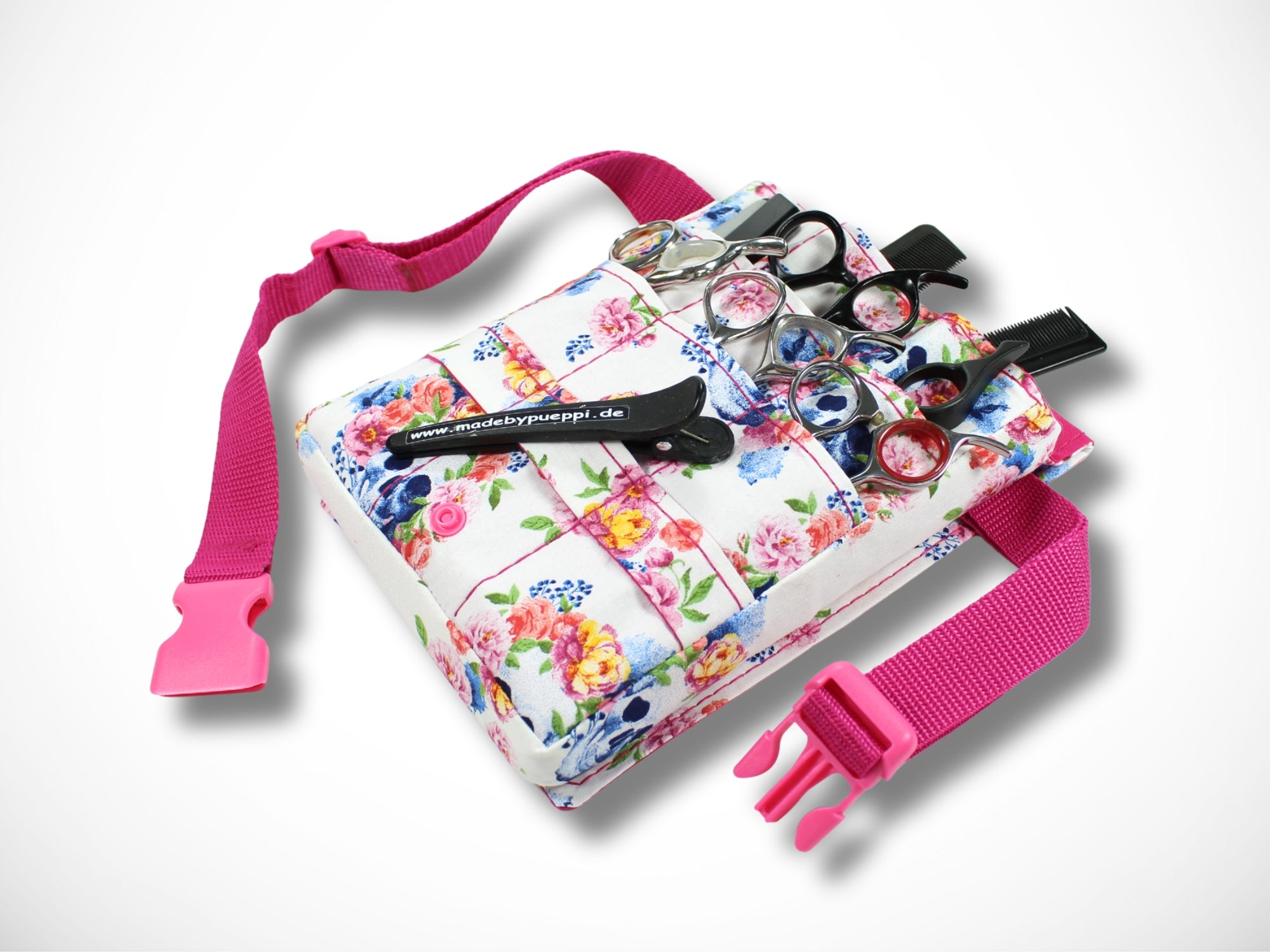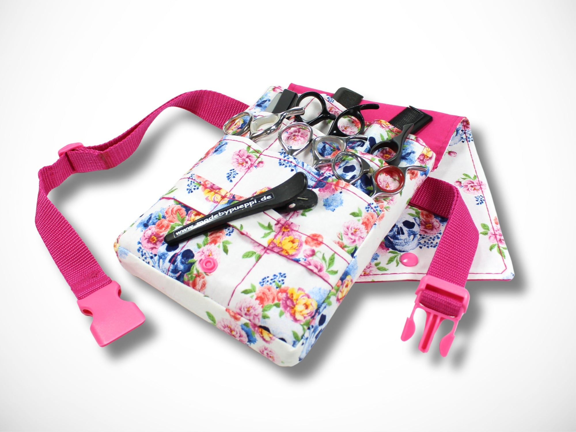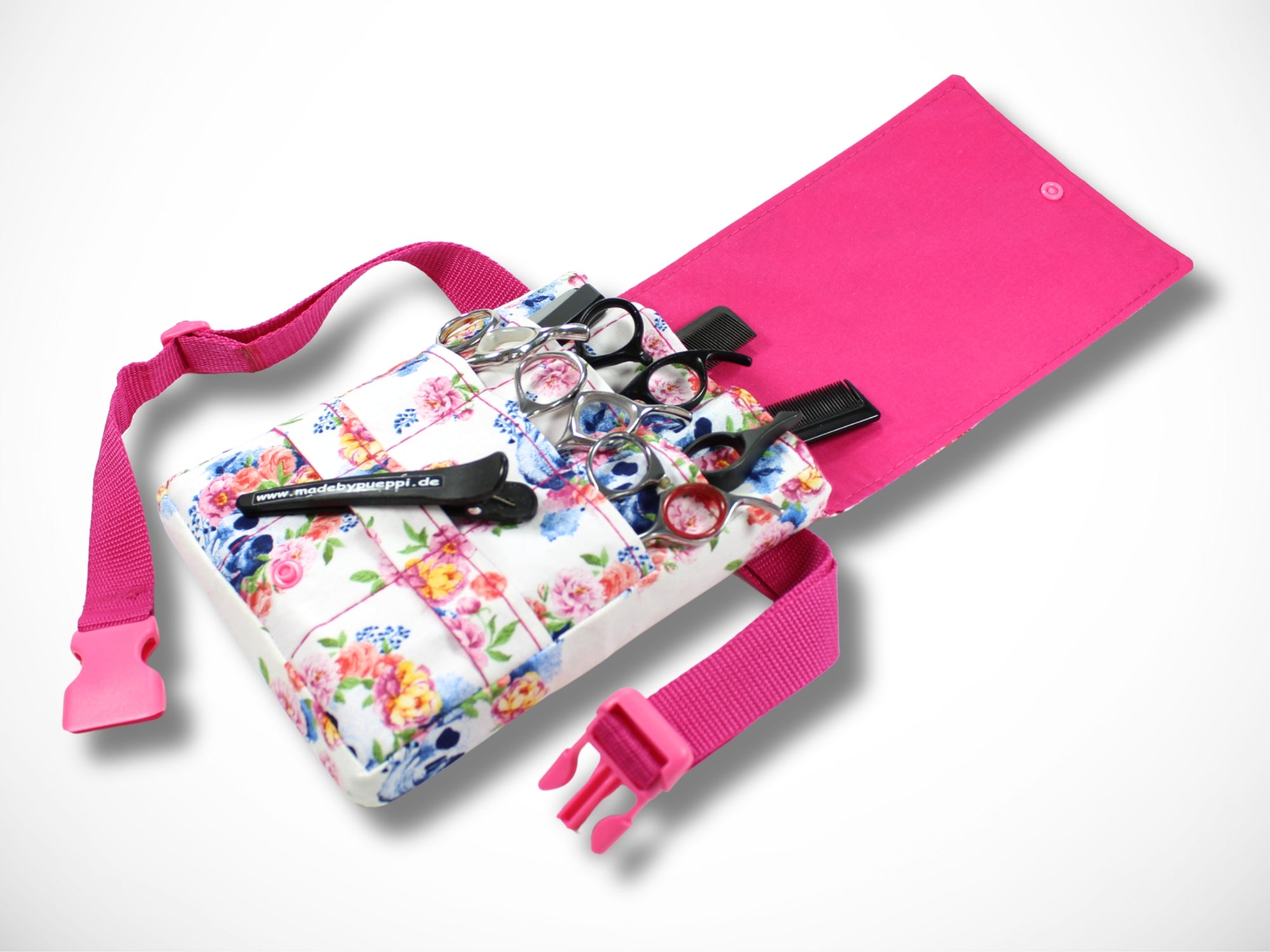 Sie wird als Gürteltasche um die Hüfte getragen und bietet viel Platz für deine Scheren, Messer und Kämme.