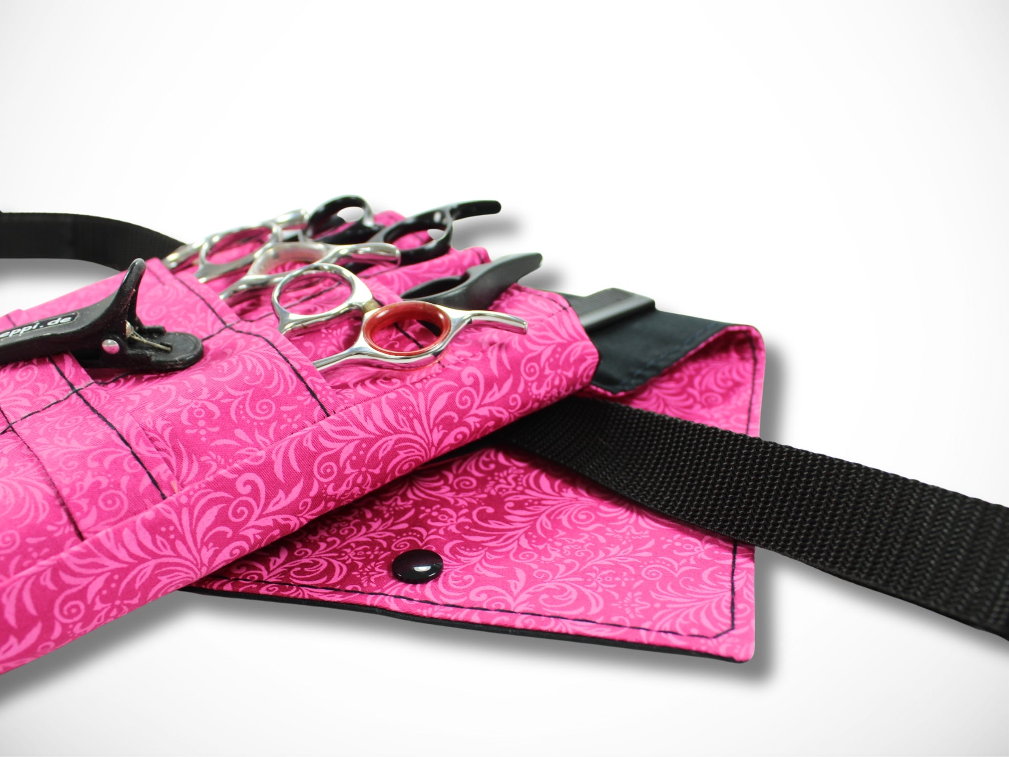 Sie wird als Gürteltasche um die Hüfte getragen und bietet viel Platz für deine Scheren, Messer und Kämme.