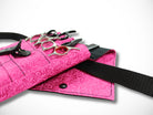 Die Tasche wird aus pinkem Baumwollstoff mit Tribale Motiven angefertigt. Für die Stabilität der Tasche sorgt eine Verstärkung des Stoffes.Der Innenbereich der Tasche ist ein schwarzer Baumwollstoff, den du zum reinigen einfach heraus ziehen kannst.